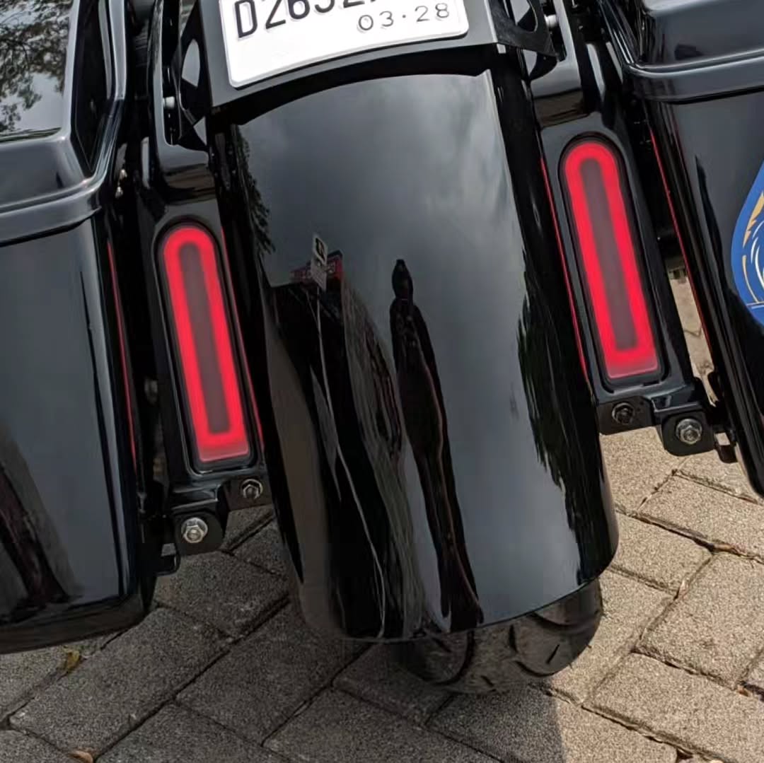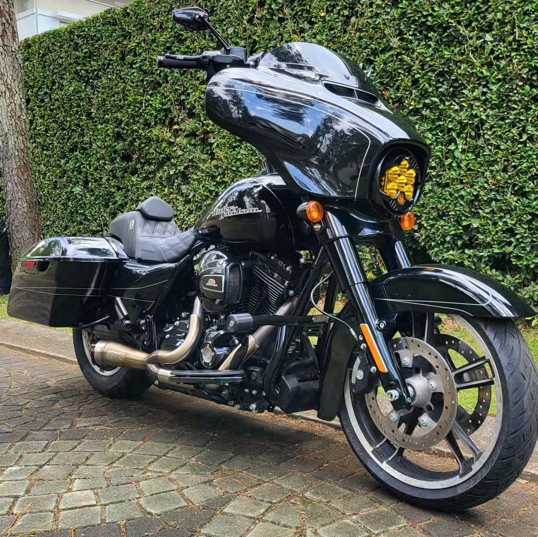 The Street Glide has hard nylon panniers that provide ample storage space for touring essentials while maintaining its stylish appearance.