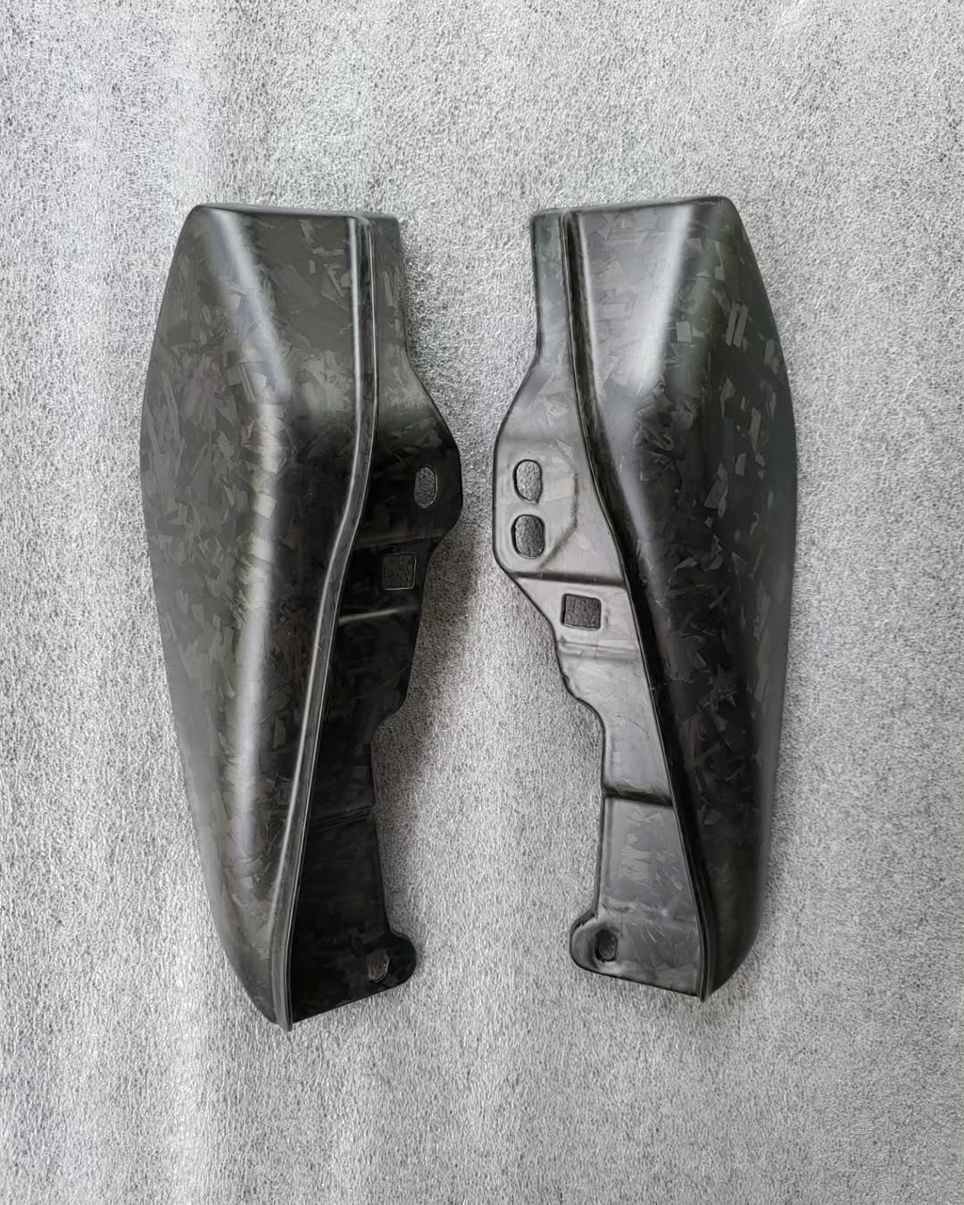 The heat shield for the Harley-Davidson Pan America made from forged carbon is a high-performance component designed to provide exceptional durability and protection for the exhaust system. This part utilizes the latest in carbon fiber technology, specifically forged carbon, which is characterized by its unique random pattern created from small irregularly placed carbon sheets. This not only enhances the aesthetic appeal of the bike but also ensures that each piece has a distinct look.
