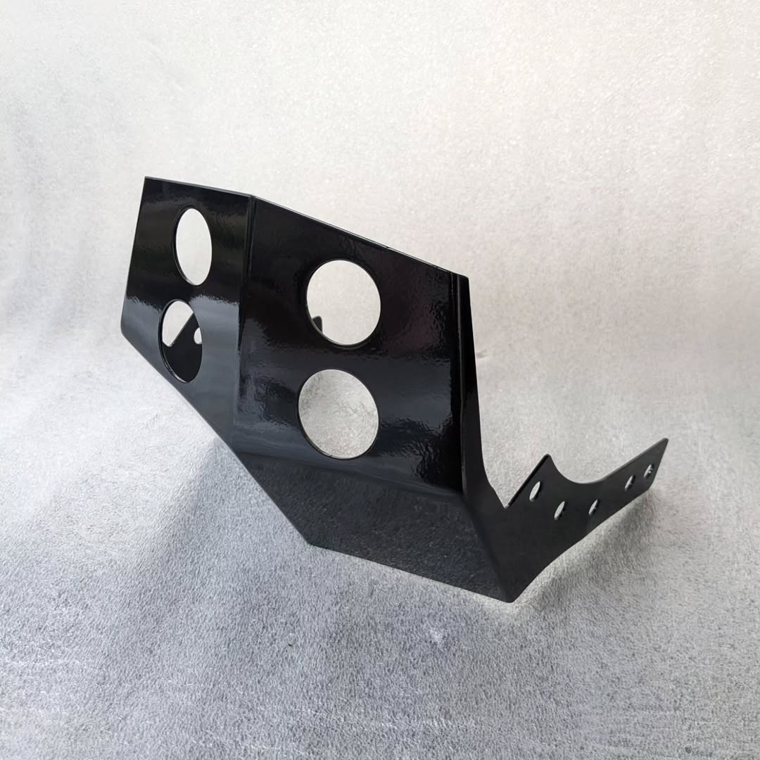 The skid plate is constructed from high-quality aluminum, which provides a sturdy yet lightweight solution for protecting critical components of the motorcycle. Its design includes pre-drilled mounting holes for easy installation without requiring modifications to the bike. The skid plate not only enhances protection but also adds an aesthetic appeal to the motorcycle.